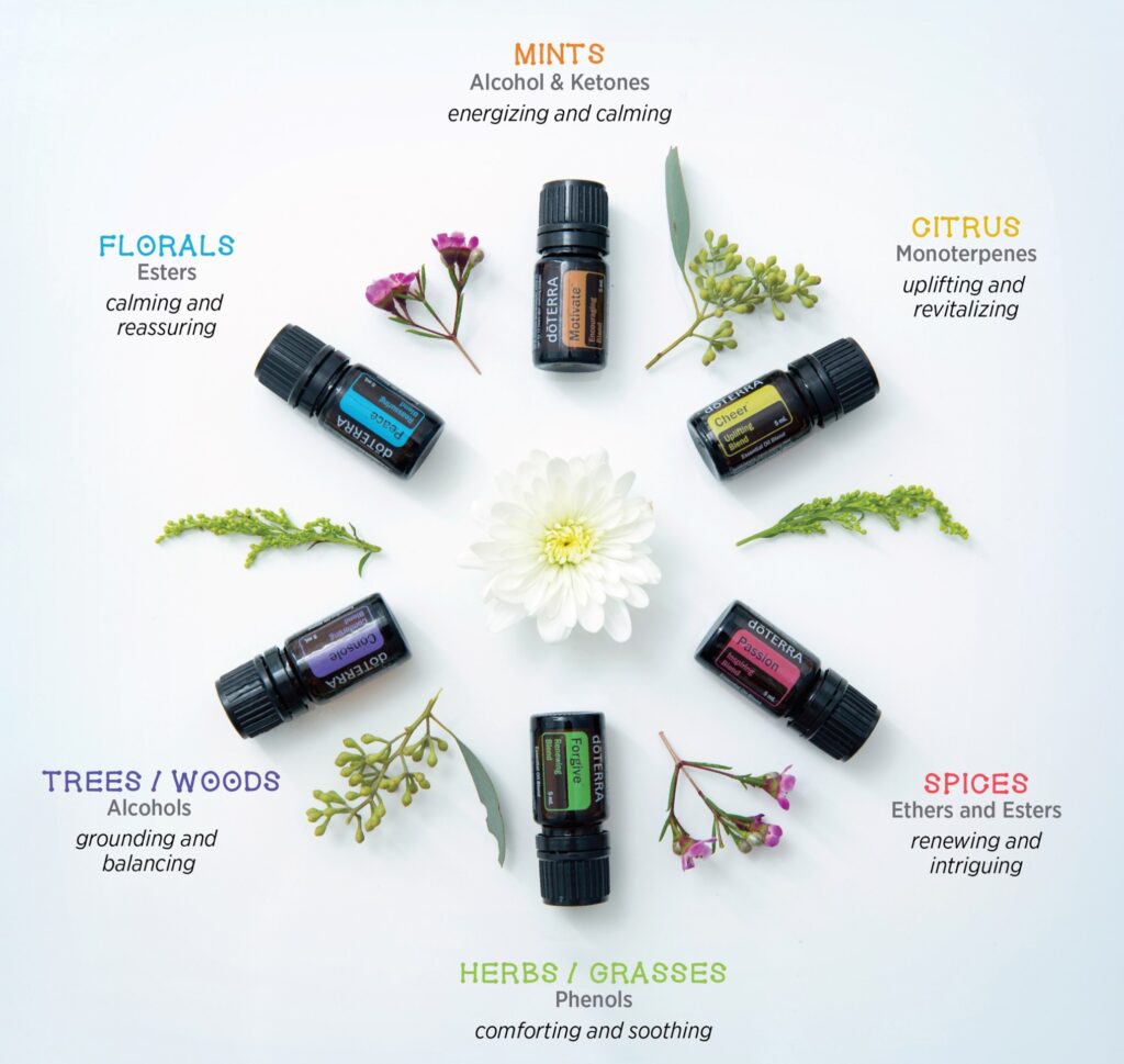 מכיוון שכל שמן אתרי יכול לגרום לתגובה שונה, עיצוב מערכת ™dōTERRA Emotional Aromatherapy מבוסס על כימיה. כל תערובת שמנים במערכת מורכבת מתרכובות כימיות בסיסיות המחולקות לקטגוריות.