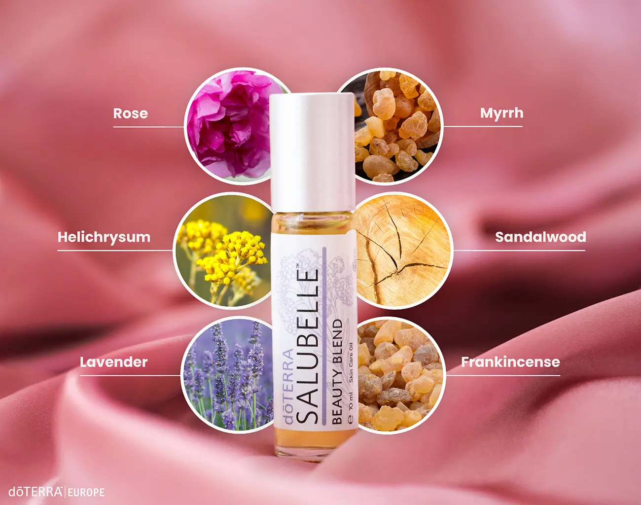 מדוע תערובת Salubelle של dōTERRA? התערובת מכילה שמנים אתריים של לבונה, סנדלווד הוואי, לבנדר, מִרְיָה, Helichrysum וּוֶרֶד, המעניקים לעור תחושה מרגיעה ושומרים עליו בריא ורענן.